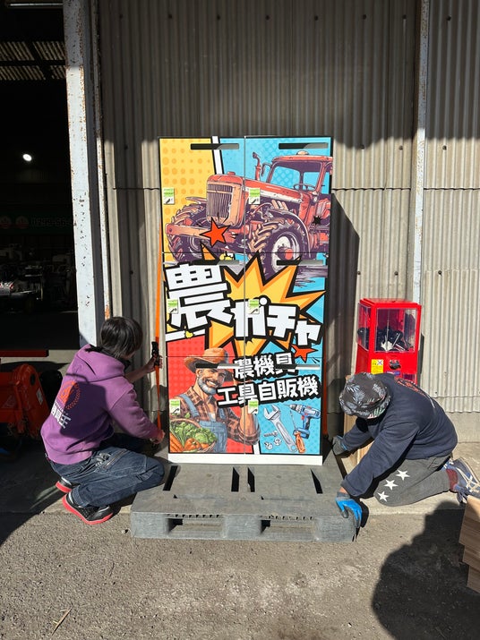 「一般の人々にも農業や農機具を身近に感じてもらいたい」という想いから、このユニークな自動販売機の設置を企画しました。また、「何が出てくるかはお楽しみ」というエンターテインメント要素を取り入れ、農機具や工具を“ガチャ”感覚で楽しみながら購入できる仕組みを開発しました。