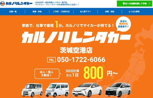カルノリレンタカー茨城空港店の特徴1:短期~中長期利用が可能なこと