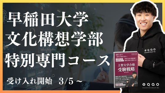 この度、総合型選抜専門塾EQAOでは、早稲田大学文化構想学部 専門コースの受け入れ開始が決定いたしました!EQAOだからこそ提供できる独自のメソッドで難関大学合格を目指す受験生を全力でサポートします!