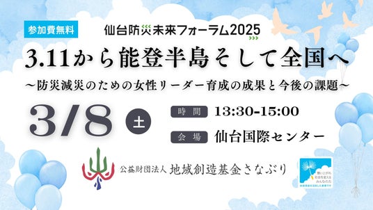 公益財団法人地域創造基金さなぶり (所在地:宮城県仙台市、理事長:大滝精一)は、東日本大震災による避難所その他における女性を取り巻く課題に対して、休眠預金制度を活用して「女性のエンパワメントで高める地域の防災力リーダー育成事業」として国内7地域の事業へ総額2.1億円の資金提供を実施、地域の現状に即した育成プログラムにより2年半で350人以上の女性防災力リーダーを育成してきました。