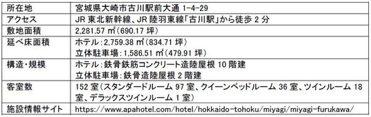 【「アパホテル〈宮城古川駅前〉」施設概要】