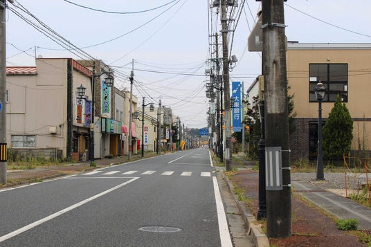東日本大震災以前は浪江町のメインストリートとして町内随一のにぎわいがあった「新町通り」。