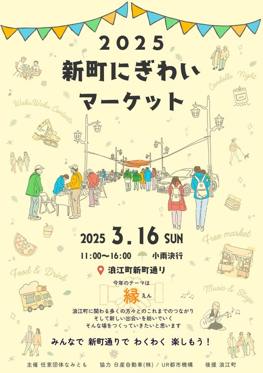 福島県浪江町で地域コミュニティづくりに取り組む任意団体「なみとも」(代表:小林奈保子)は、2025年3月16日(日)に浪江町で「2025新町にぎわいマーケット」を開催します。かつて浪江町で一番にぎわいのあった新町通りを中心に、地元住民や出店にご協力いただく皆様、そして来場者の皆様と一緒に、人々が行き交う風景を生み出すイベントです。