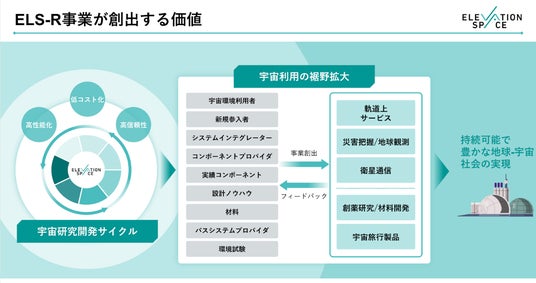 ElevationSpaceは、「ポストISS時代」を見据え、宇宙環境利用プラットフォーム「ELS-R(読み:イーエルエスアール)」の提供を目指しています。
