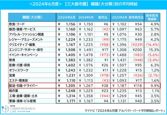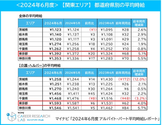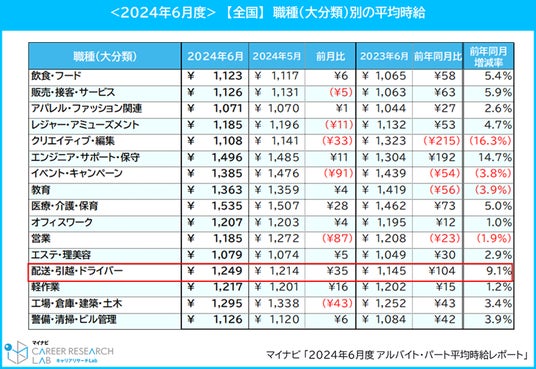 『2024年6月度 アルバイト・パート平均時給レポート』