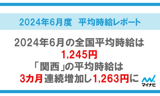 株式会社マイナビ(本社:東京都千代田区、代表取締役 社長執行役員:土屋芳明)は、アルバイト平均時給レポート(2024年6月度)を発表しました。本調査は、アルバイト・パート求人情報サイト『マイナビバイト』(https://baito.mynavi.jp/)に掲載された求人広告データを集計したものです。