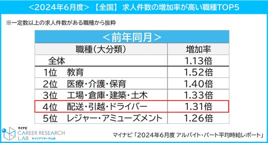 - 2024年6月の全国平均時給は1,245円。物流業界の「2024年問題」へ対応を求められる[配送・引越・ドライバー]の平均時給は調査開始以来最高の1,249円に【図1、2、3】