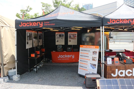 能登の支援活動を映像とパネルで展示したJackeryブース