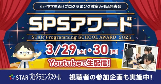 プログラミング、パソコン教室を全国100か所以上に展開する株式会社チアリー(NSGグループ)は、自社直営教室STARプログラミングスクール(SPS)の受講生を対象とする、「SPSアワード2025」(URL:https://www.star-programming-school.com/sps-award2025/)を3月29日(土)から3月30日(日)の2日間、オンラインにて開催いたします。