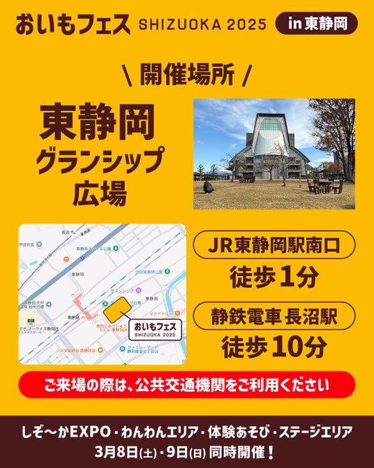 「おいもフェス SHIZUOKA 2025」が3月8日より3日間、グランシップ広場で開催中。初日は地元テレビ局3局が取材し、生中継も。週末にかけて多くの来場が予想され、おいもの魅力を満喫できます