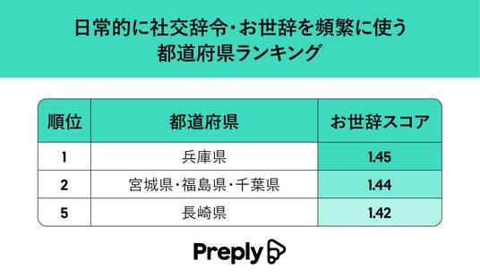 社交辞令がもっとも得意な都道府県は「兵庫県」!お世辞・社交辞令をもっとも使う都道府県についての調査結果を発表