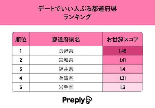 【デートでいい人ぶる都道府県ランキング】