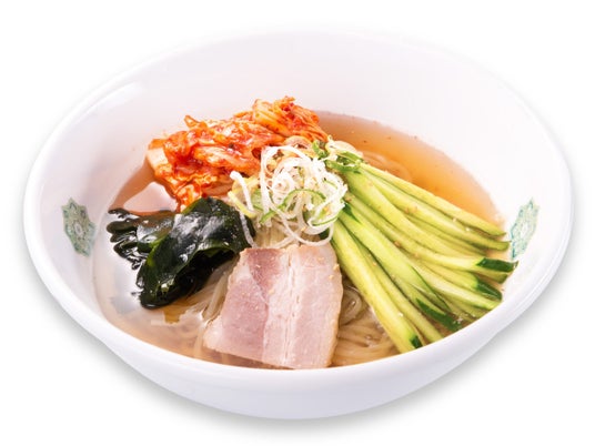 黒酢、リンゴ酢、レモン汁を独自のバランスで配合し、本醸造しょうゆと合わせて仕上げたスープと、具材にきゅうり、ハム、わかめ、甘みのある錦糸玉子を使用しています。