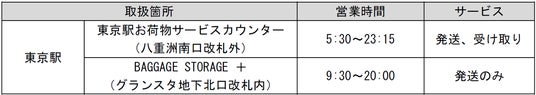 ※東京駅から発送する当日便の最終受付は、サービス対象列車の最終便の発車30分前までです。