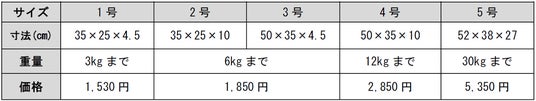 ※上記の表の寸法と重量のいずれか大きい方のサイズを適用します。