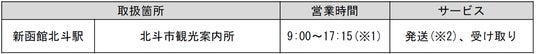 ※1北斗市観光案内所の営業時間は9:00~18:00です。