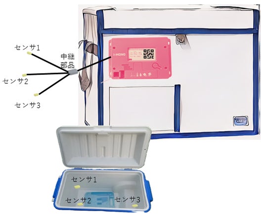 保冷ボックス内部は場所によって温度差が生じます。3つのセンサープローブを備えているため、保冷ボックス内部の任意の場所に置かれた温度管理対象物の温度管理をより高精度に行うことができます。