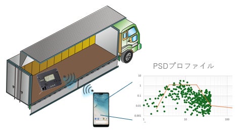 数分間の振動モニタリングを行い、数秒でデータをダウンロード。即座にスマートフォン画面上でJIS Z 0200:2023プロファイルと照合し、輸送トラックとして適しているかを判断できます