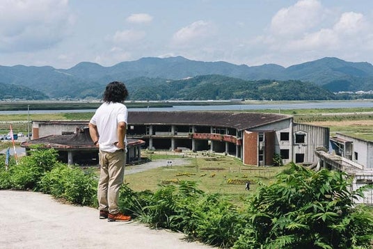 大川小学校の裏山から被災した校舎を振り返る