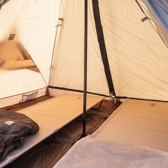 ◎最大4名まで宿泊可能なテントにタープも設置されたデラックスキャンププラン。