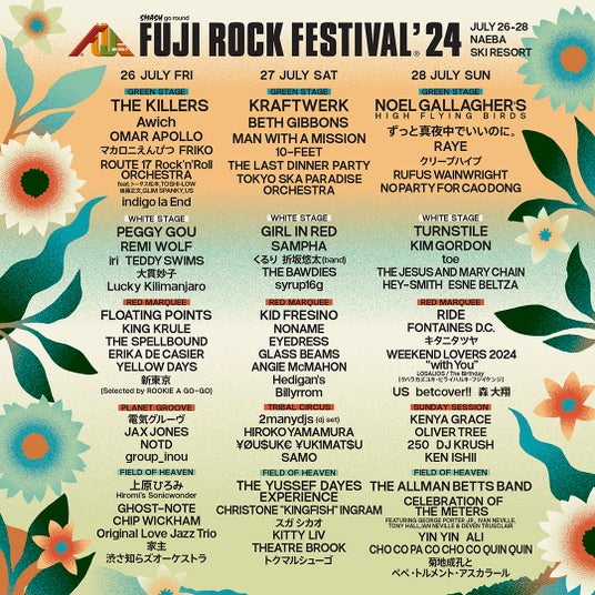 FUJI ROCK FESTIVAL 2024|JULY 26 FRI, 27 SAT, 28 SUN