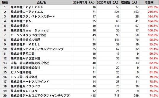 ・2024年1月時点と2025年1月時点の従業員数を比較