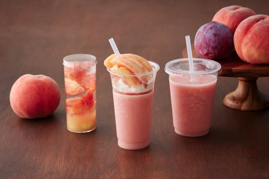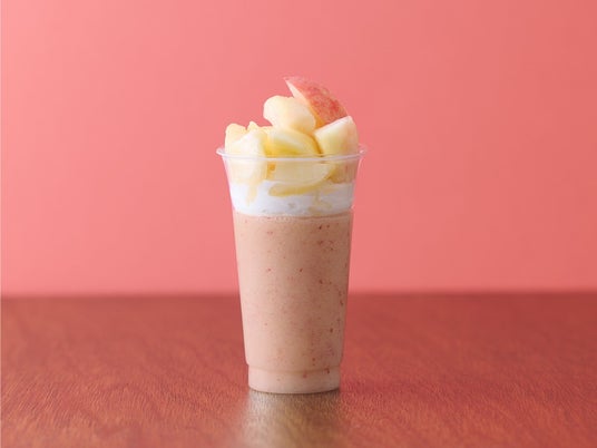 『旬の一果』は、店舗で完熟の桃を1つ1つカットし、ご注文を受けてからその場で皮ごとミキシングするこだわりのフレッシュジュースです。一口飲んだ瞬間口いっぱいに桃そのままの爽やかな香りと甘さが広がり、ひんやりと滑らかな食感が楽しめる、暑い夏にぴったりのドリンクです。