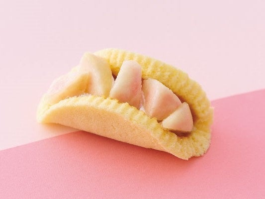 『ふるれ』は、自社製造のスポンジケーキにカスタードとホイップを絞り、桃の果肉を挟みこんだスイーツです。ふわふわでしっとりとした生地と甘さ控えめのカスタードとホイップが、爽やかな桃の甘さと香りを引き立てます。