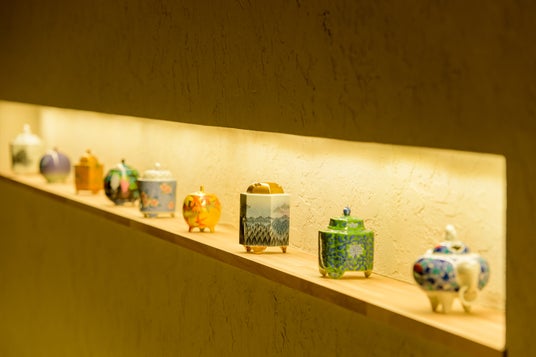 館内には「小樽硝子」、「信楽焼」など、北前船に縁ある地域のアートが並びます。