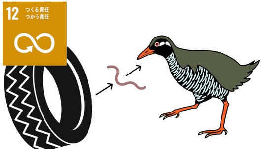 タイヤには機能性の向上を目的に様々な化学物質が添加されています。ヤンバルクイナ砂のう内でタイヤ摩耗片からこれらが溶出・蓄積し、影響を与える可能性があります。今後、ヤンバルクイナを含む野生生物へのタイヤ片の暴露リスクに関する調査研究を行う必要があると思われます。