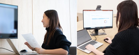 左:定例会の様子、右:数値分析の様子