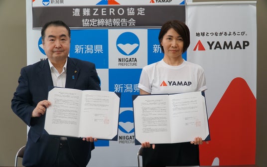 登山地図GPSアプリ「YAMAP」を運営する株式会社ヤマップ(福岡市、代表取締役CEO 春山慶彦、以下ヤマップ)は新潟県と山岳救助の際に有用な情報である「登山届」、及び、捜索隊員の二次災害を防止する、「捜索隊員トラッキングシステム」に関する「遭難ZERO協定」を締結いたしました。