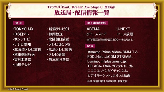 ■TVアニメ「BanG Dream! Ave Mujica」放送・配信情報