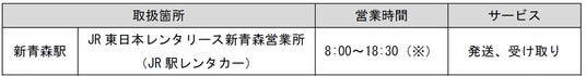 ※JR東日本レンタリース新青森営業所の営業時間は8:00~20:00(12月1日~3月31日は8:00~19:00)です。