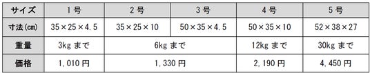 ※上記の表の寸法と重量のいずれか大きい方のサイズを適用します。