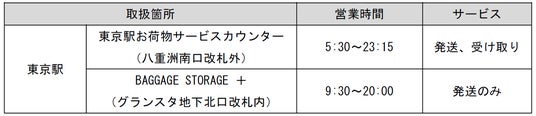 ※東京駅から発送する当日便の最終受付は、サービス対象列車の最終便の発車30分前までです。