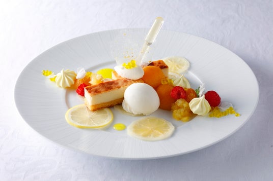◆瀬戸内レモンと長崎県産枇杷を楽しむチーズテリーヌ “銀座はちみつ”とタイムライムソルベを添えて 2,700円