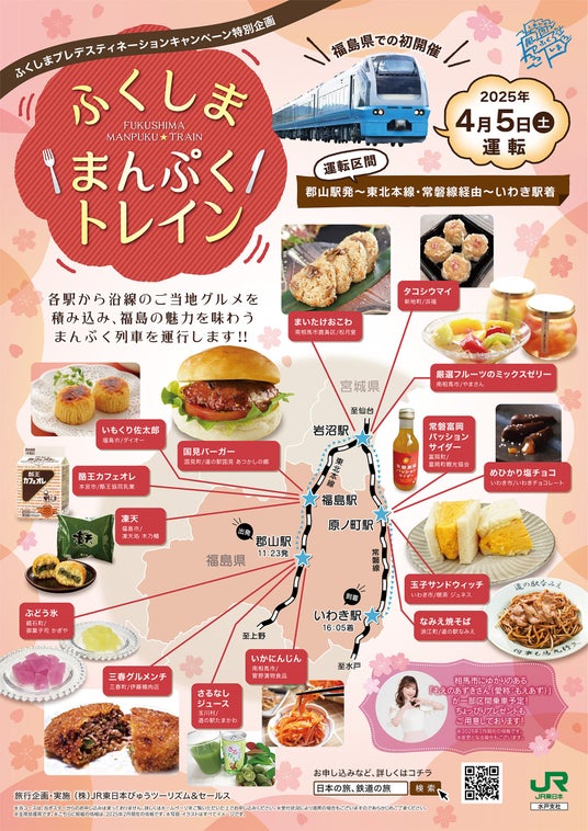 ○株式会社 JR東日本びゅうツーリズム&セールス(本社所在地:東京都墨田区)は、2025年4月5日(土)出発、「ふくしま」のご当地グルメを車内で楽しむツアーを販売しております。