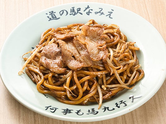 食べ応えと腹持ちをよくするために考案されたとされている「なみえ焼そば」。通常の約3倍もの太い麺とうまみたっぷり濃厚ソース、豚肉とモヤシだけのシンプルな具が特徴です。