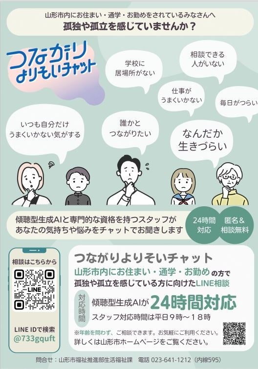 地方版「孤独・孤立対策官民連携プラットフォーム」推進事業にて山形市と連携 市民のすべての方を対象とするLINE相談「つながりよりそいチャット」を開設