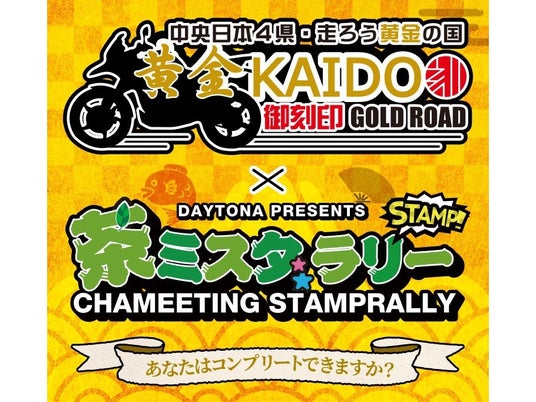 今年の「茶ミ☆スタラリー」は、新潟県、長野県、山梨県、静岡県の中央日本4県が協力し、静岡県の土肥金山と新潟県の佐渡金山を結ぶルートを「黄金KAIDO」と名付けたエリアの御刻印スポットをオートバイで巡る「黄金KAIDO御刻印ツーリングラリー」とコラボレーションします。
