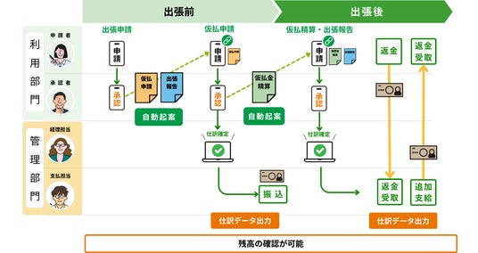 出張の社内手続き申請と仮払精算の全体図