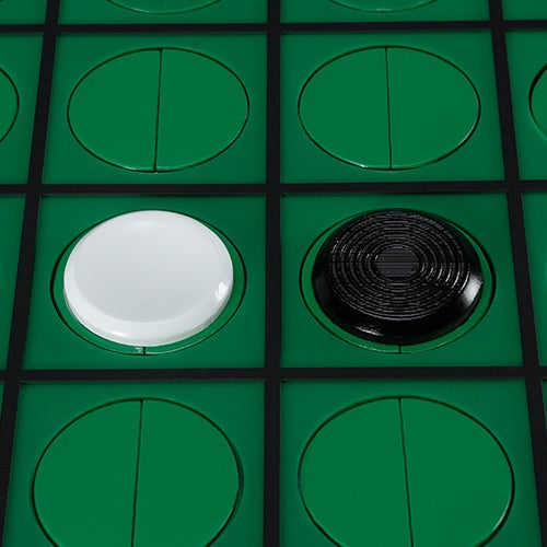 一体オセロ(黒石の面に凸、白石の面に凹があり、触ると石の判別ができるユニバーサルデザイン)