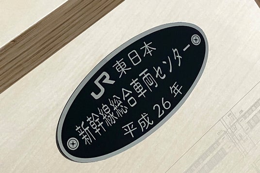 ▲「とれいゆ つばさ」の車両図面を保管していたJR東日本新幹線総合車両センターの社員がデザインしたプレート。