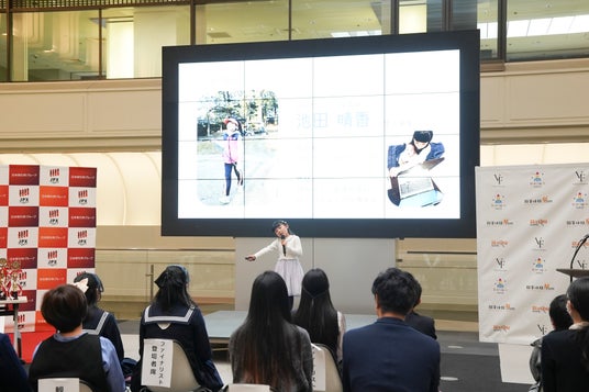 決勝大会は東京証券取引所にて行われ、池田さんは堂々としたプレゼンテーションを披露。会場には教育関係者や企業の審査員が集まり、発表内容を真剣に評価しました。受賞発表の瞬間、会場は大きな拍手に包まれました。池田さんの名前が呼ばれると、驚きと喜びの表情を見せながら、ステージへ向かいました。特別審査員の尾木直樹(尾木ママ)氏から直接トロフィーを授与されさらに、副賞として大阪万博のチケットが贈られました。