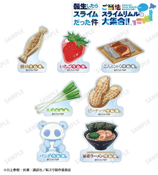 茨城県の納豆リムル、栃木県のいちごリムル、群馬県のこんにゃくリムル、埼玉県のネギリムル、千葉県のピーナッツリムル、東京都のパンダリムル、神奈川県の家系ラーメンリムルのイラストをアクリルステッカーに仕上げました。