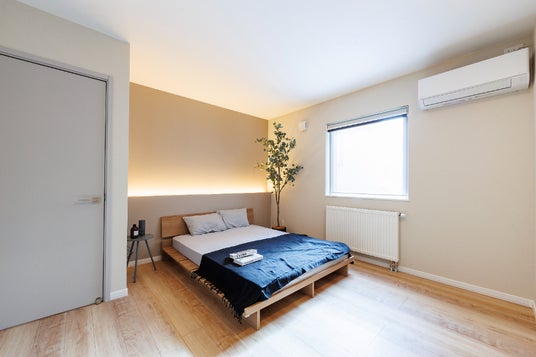 間接照明が静かな時間を演出する主寝室。安眠や鎮静効果が期待できるラベンダーとハーブの香りが、空間をより上質なものにします。ディフューザーは静音タイプで、眠りを妨げることなく使用できます。就寝前から香りを広げると、香りに包まれながら眠りにつくことができます。