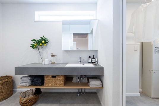 洗面所はリビングともランドリーとも独立した落ち着く空間として設計されています。朝は眠気をすっきりと覚ましてオンモードに、帰宅後は心身をリフレッシュしてオフモードに。爽やかな森の朝をイメージしたレモンやミントの清々しい香りが、オンとオフの気持ちの切り替えをサポートします。