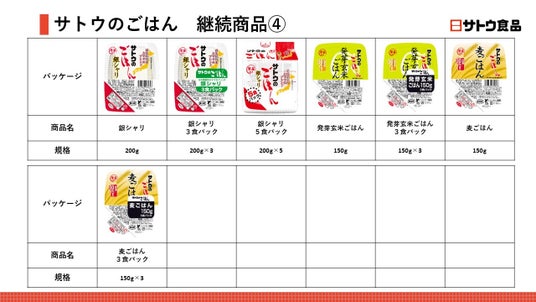 サトウ食品株式会社(以下、当社)は、生産効率化による主力品の供給強化に向け、パックごはんの一部商品を整理して、休売と終売のニュースリリースを 3 月 24 日に実施いたしました。