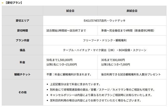 ■スタジアムで贅沢なひとときを!EAGLES’NESTの貸切パーティープラン